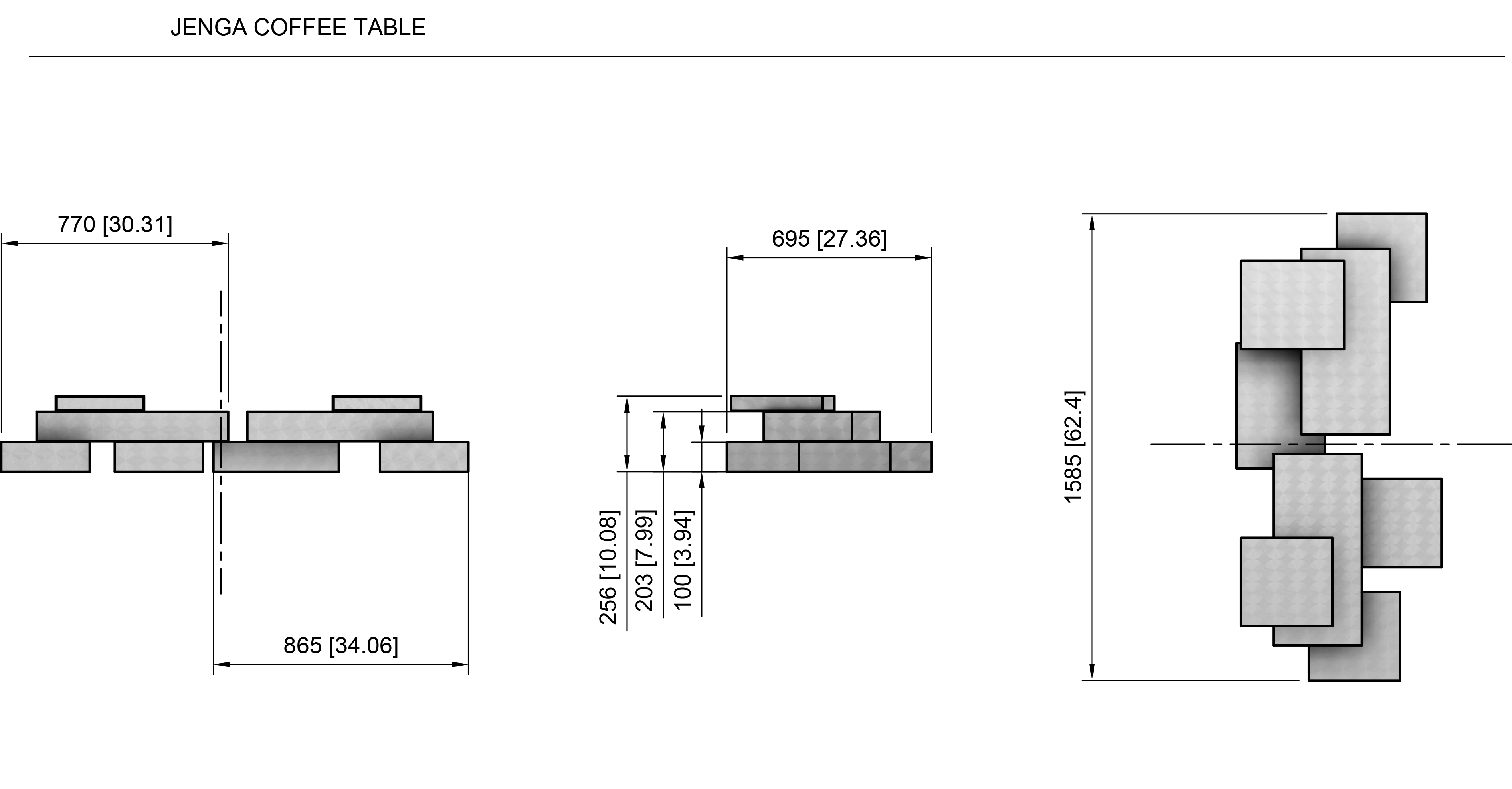 The Jenga Coffee Table is part of a two-piece collection inspired by 56 Leonard Street, the “Jenga Building” in New York designed by Herzog & de Meuron.