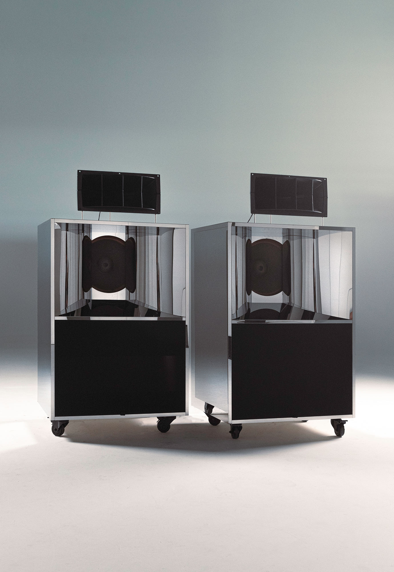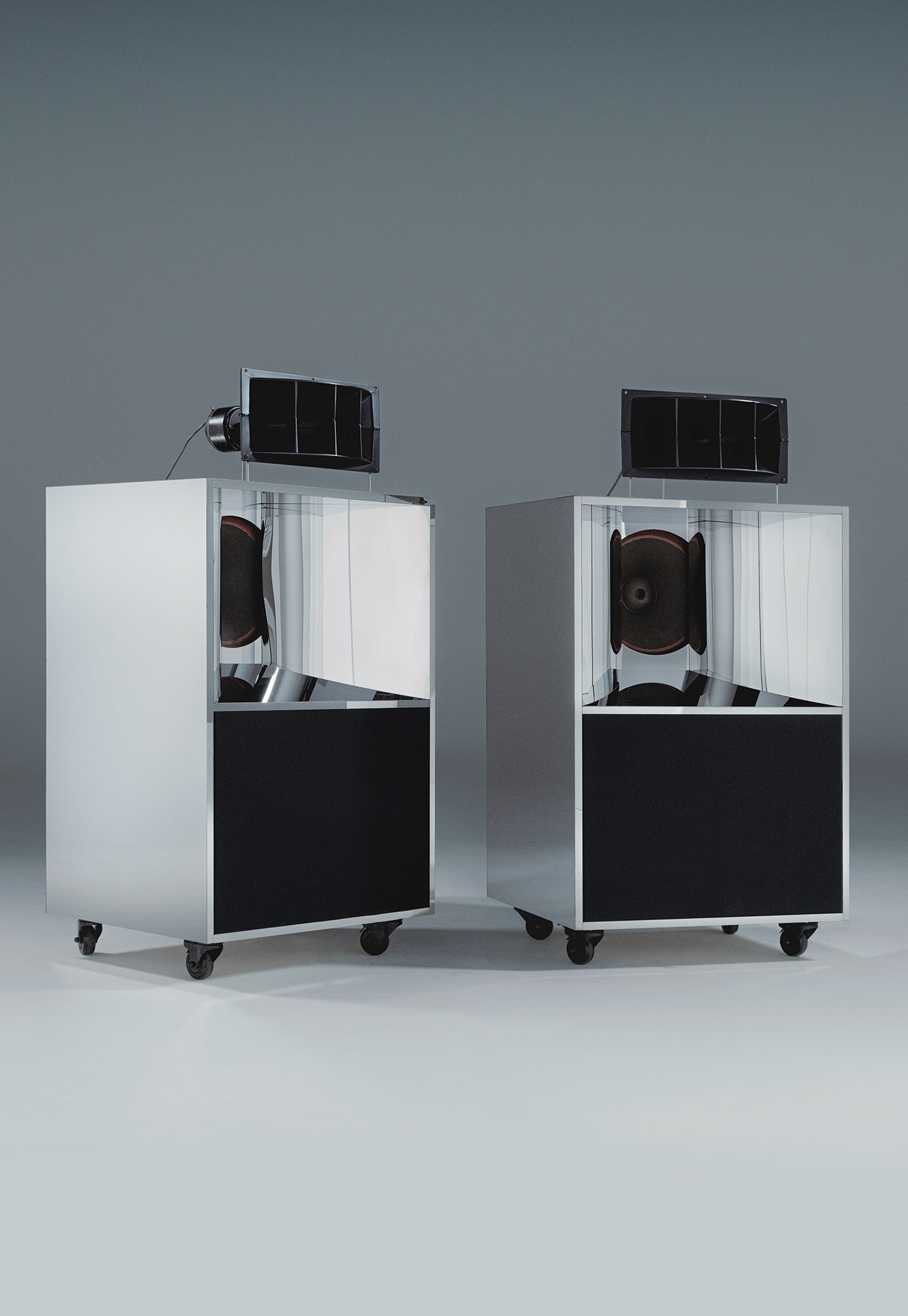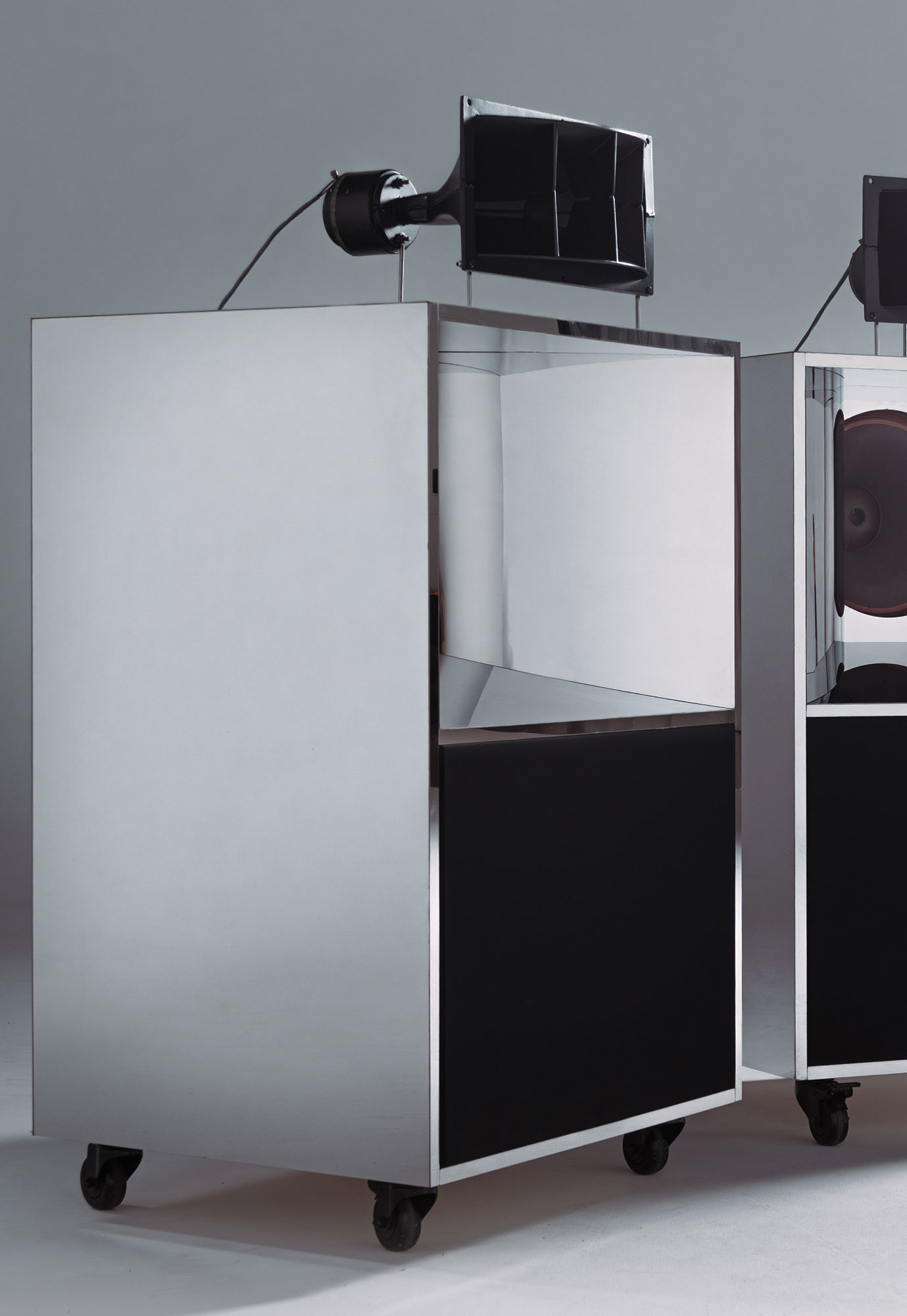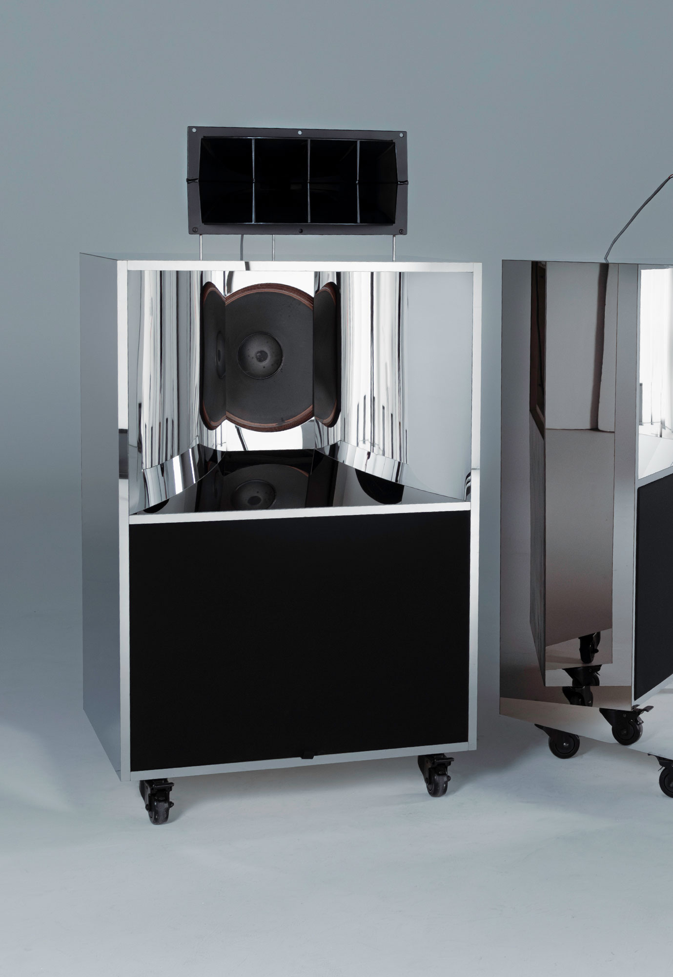 Conserving the iconic Altec A7 'Voice of the theatre' speakers. Original Altec speaker components were sourced worldwide. Plans for the original Altec A7 boxes were drawn and converted in CAD. The initial box was then CNC cut and constructed in Birch Ply applying strengthening biscuits to all joins. The box design was then again enhanced in mirror polished stainless steel piece by piece to the substrate. A project inspired by sound and the art of speakers applying design in the materials of Inox Stainless Steel.