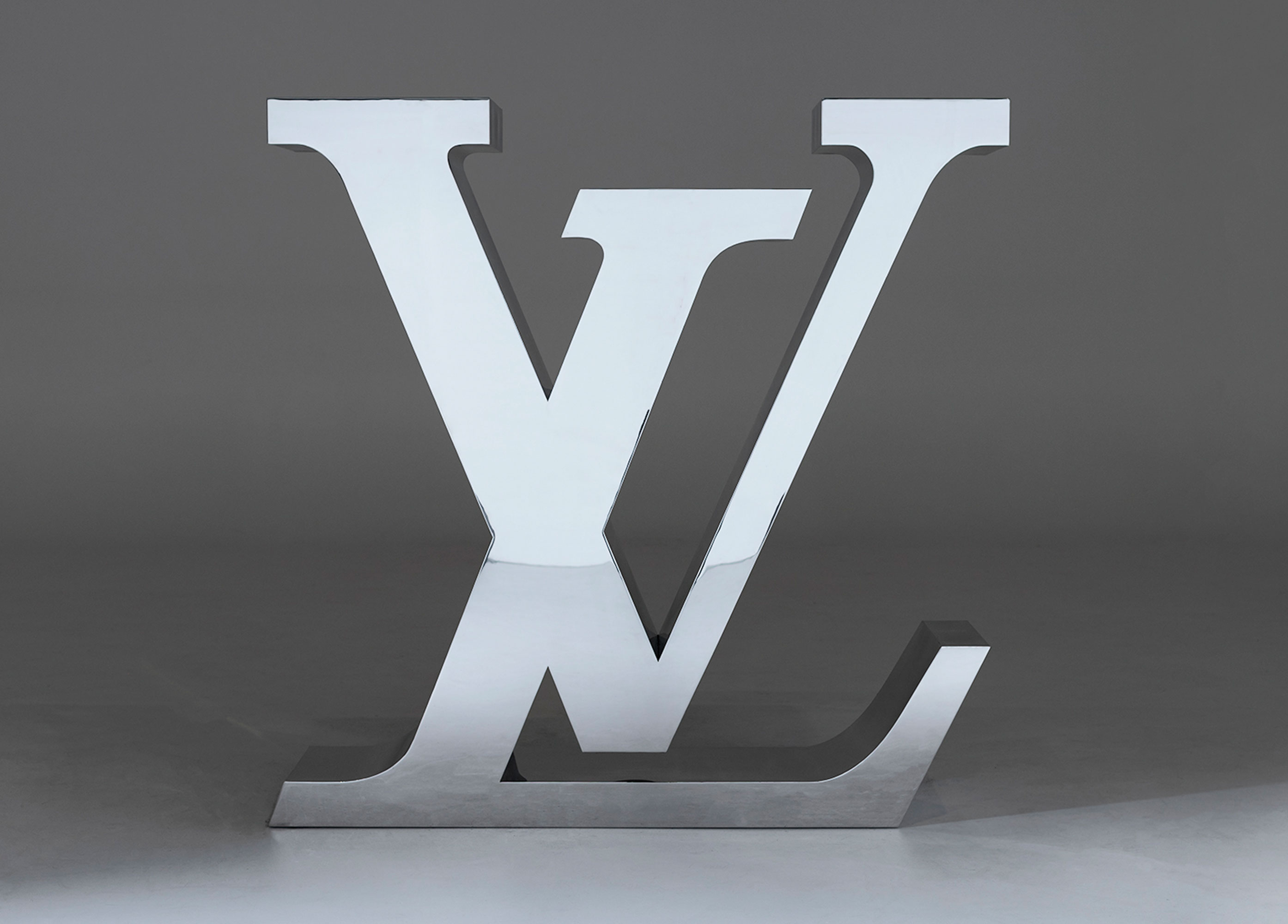 Commissioned by Louis Vuitton, this 6-foot-tall LV logo is meticulously crafted entirely from stainless steel. Fabricated from inox sheets, the seams are fully enclosed and flush finished, resulting in seamless edges. Each surface is hand-polished to achieve a mirror finish.