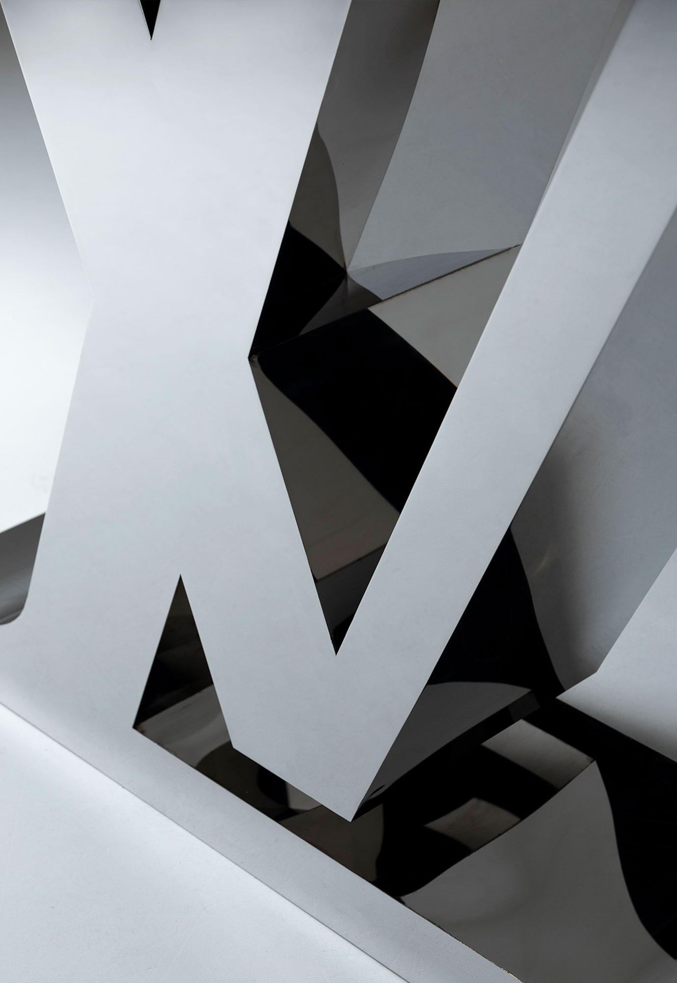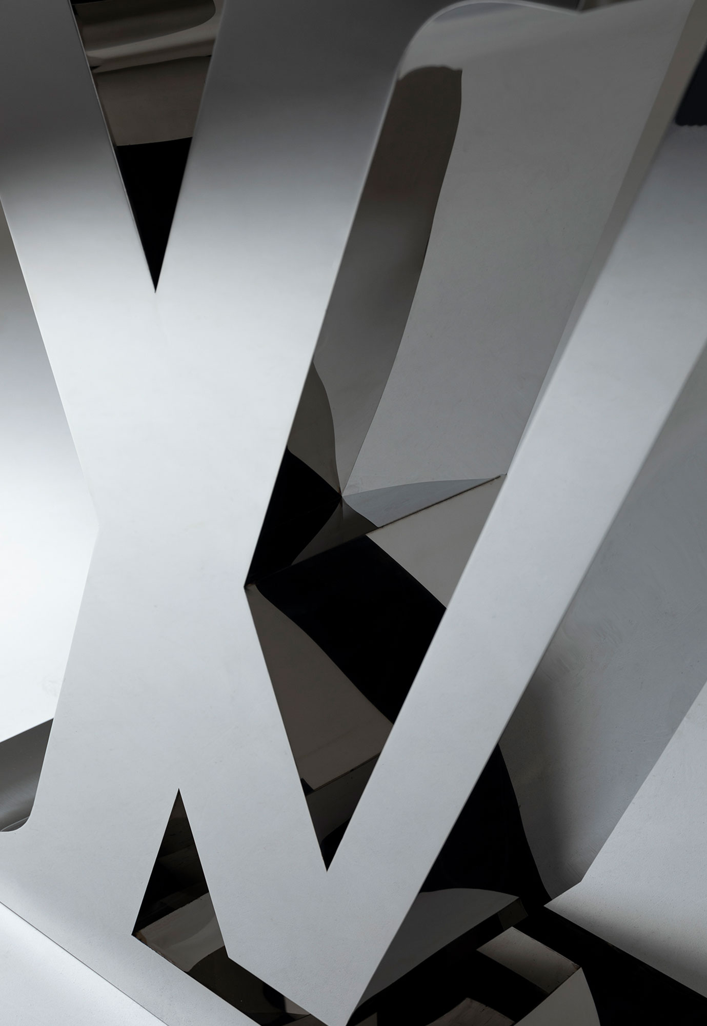 Commissioned by Louis Vuitton , this 6-foot-tall sculpture explores precision, surface, and restraint through the use of inox stainless steel.